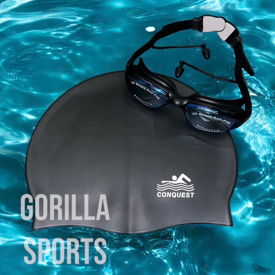 يتضمن نظارات سباحة مضادة للضباب و قبعة سباحة انسيابية، بتصميم مريح ومتين.